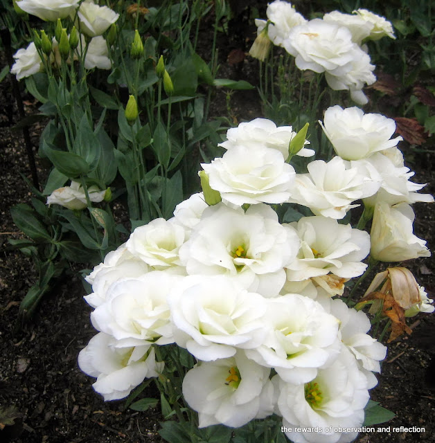 Aren't these gorgeous?? There were bright purple ones at the other end of the garden. I think they are some kind of double-bloom Lisianthus. Possibly my new favorite flower!